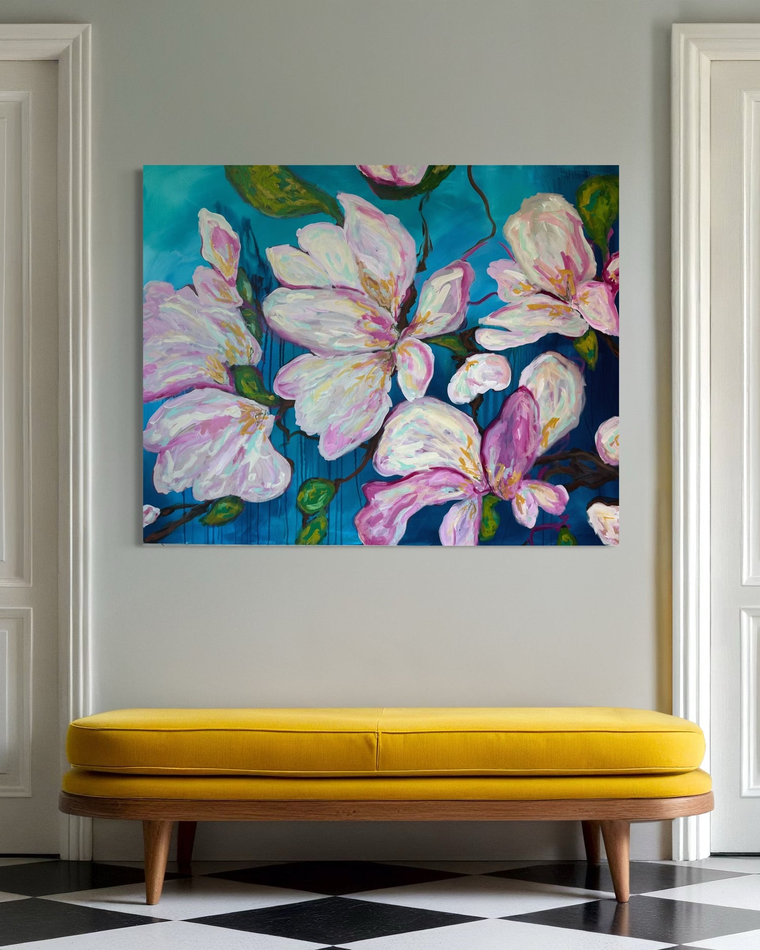 "I knew I wanted something large for my piano room to make the space feel happy, bright, and full of life. Andie brought that vision to life so beautifully with her modern touch. The pice is stunning and brings me joy every single day as we gather to listen to my daughter playing the piano while admiring Andie's beautiful art." - Tatiana