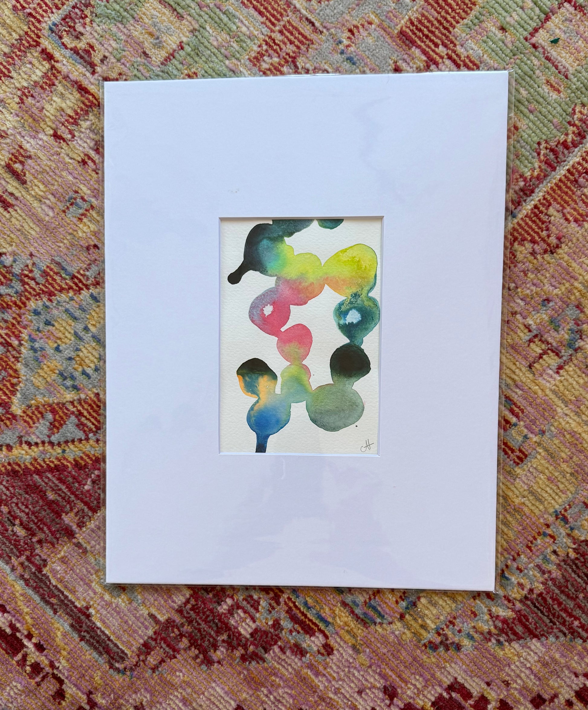 Each piece is matted with archival materials to an 11 x 14 standard frame size. This is a one of a kind original work on paper.