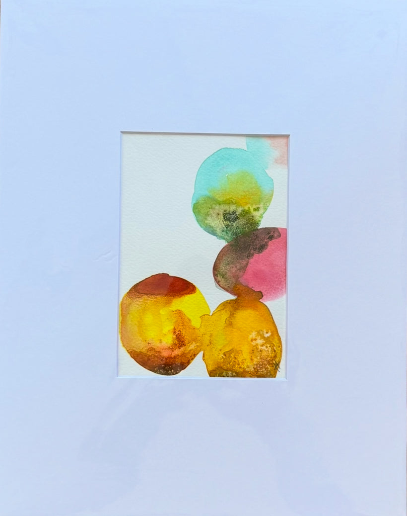 Each piece is matted with archival materials to an 11 x 14 standard frame size. This is a one of a kind original work on paper.