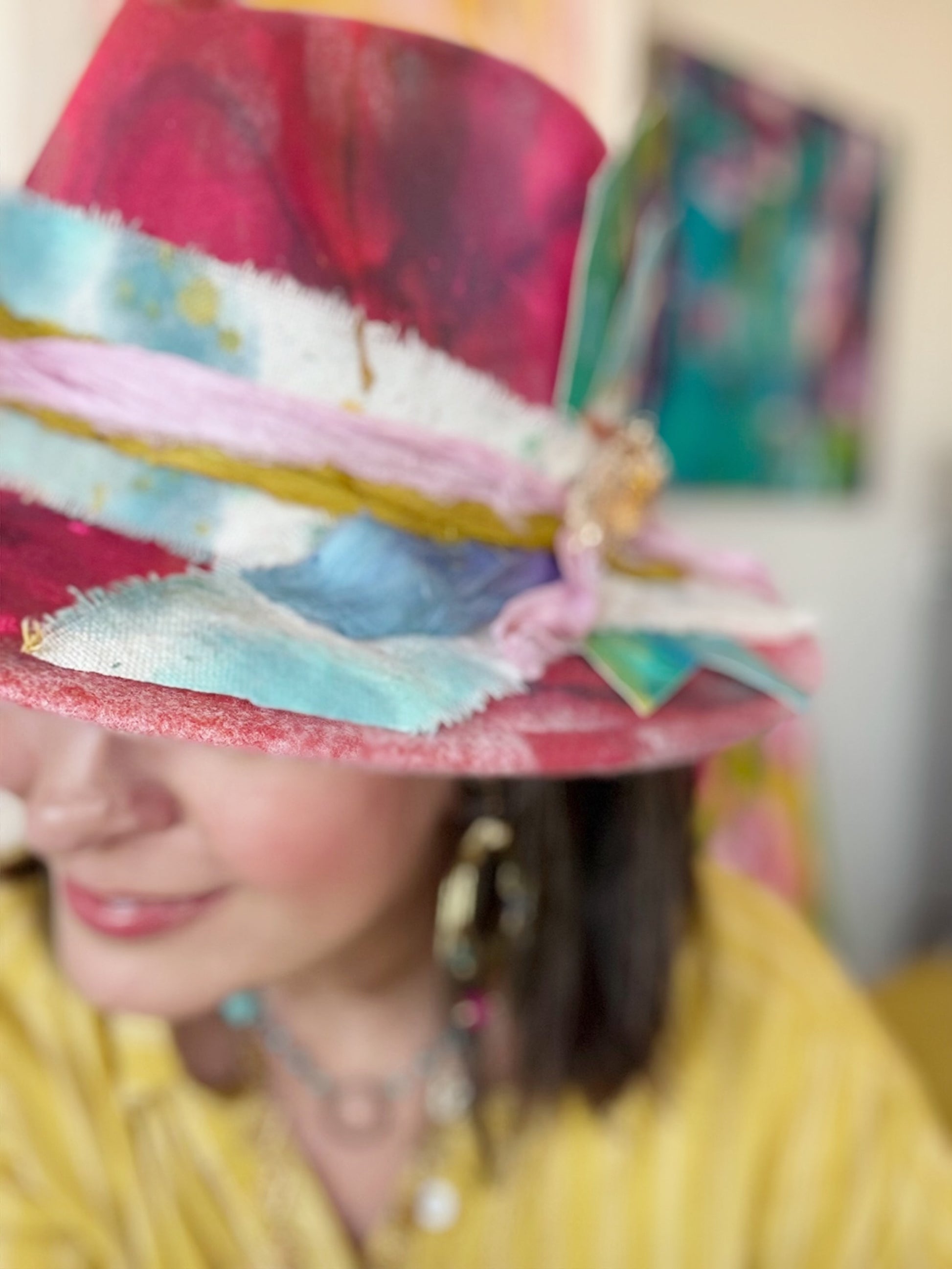 Each hat is a true one-of-a-kind piece, created slowly and intentionally by hand. Painted layers of color give every hat its own personality, movement, and mood. No two are ever the same.